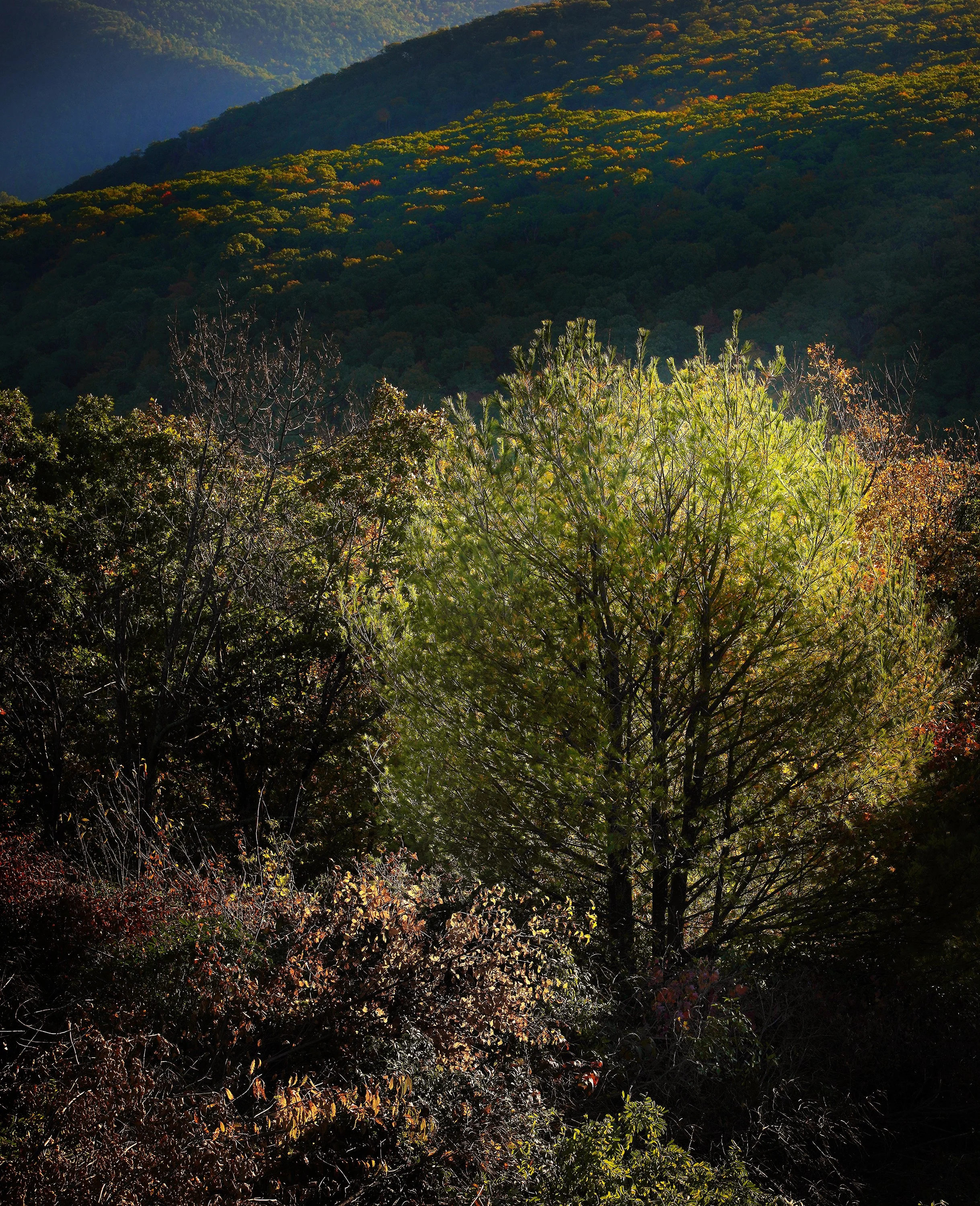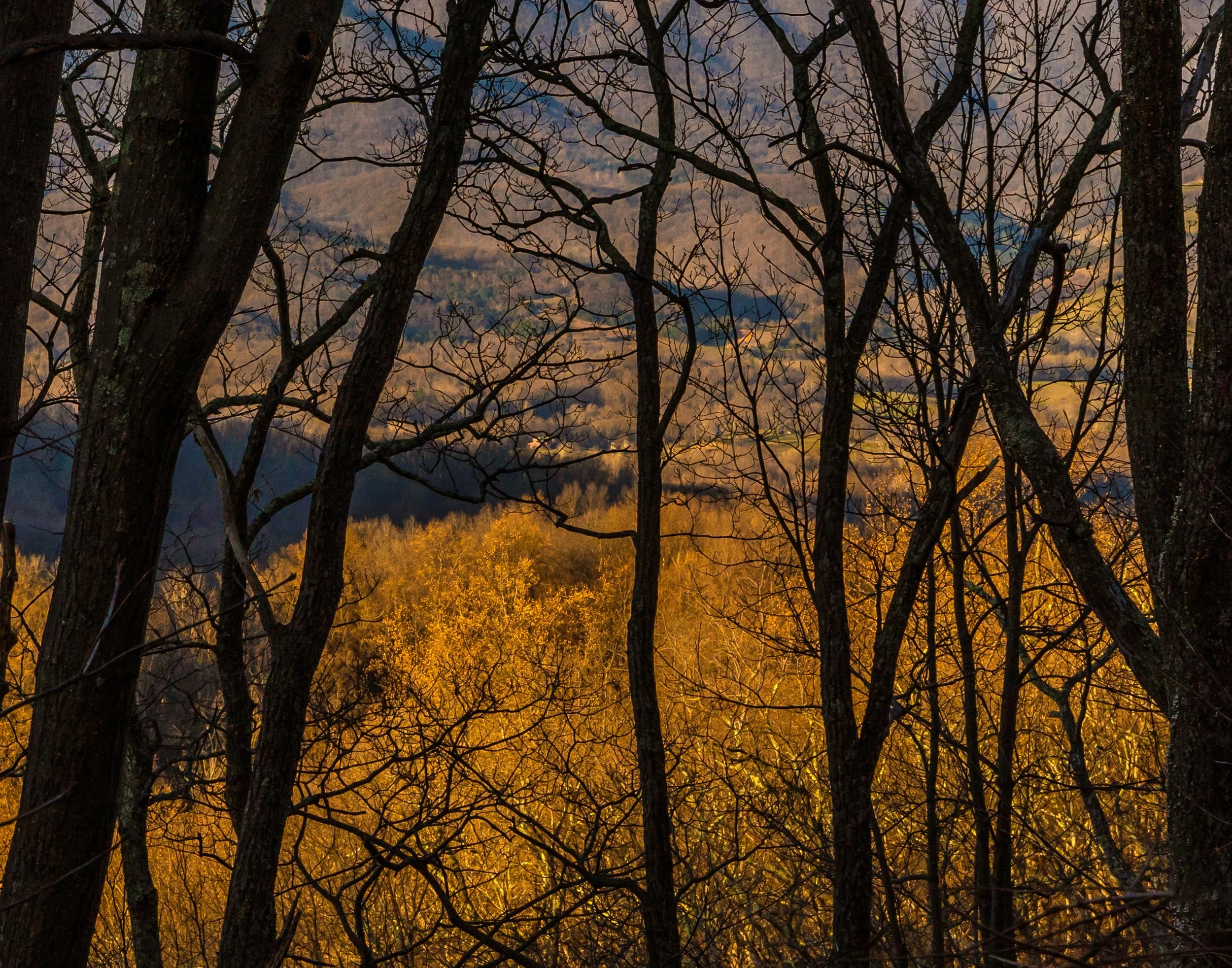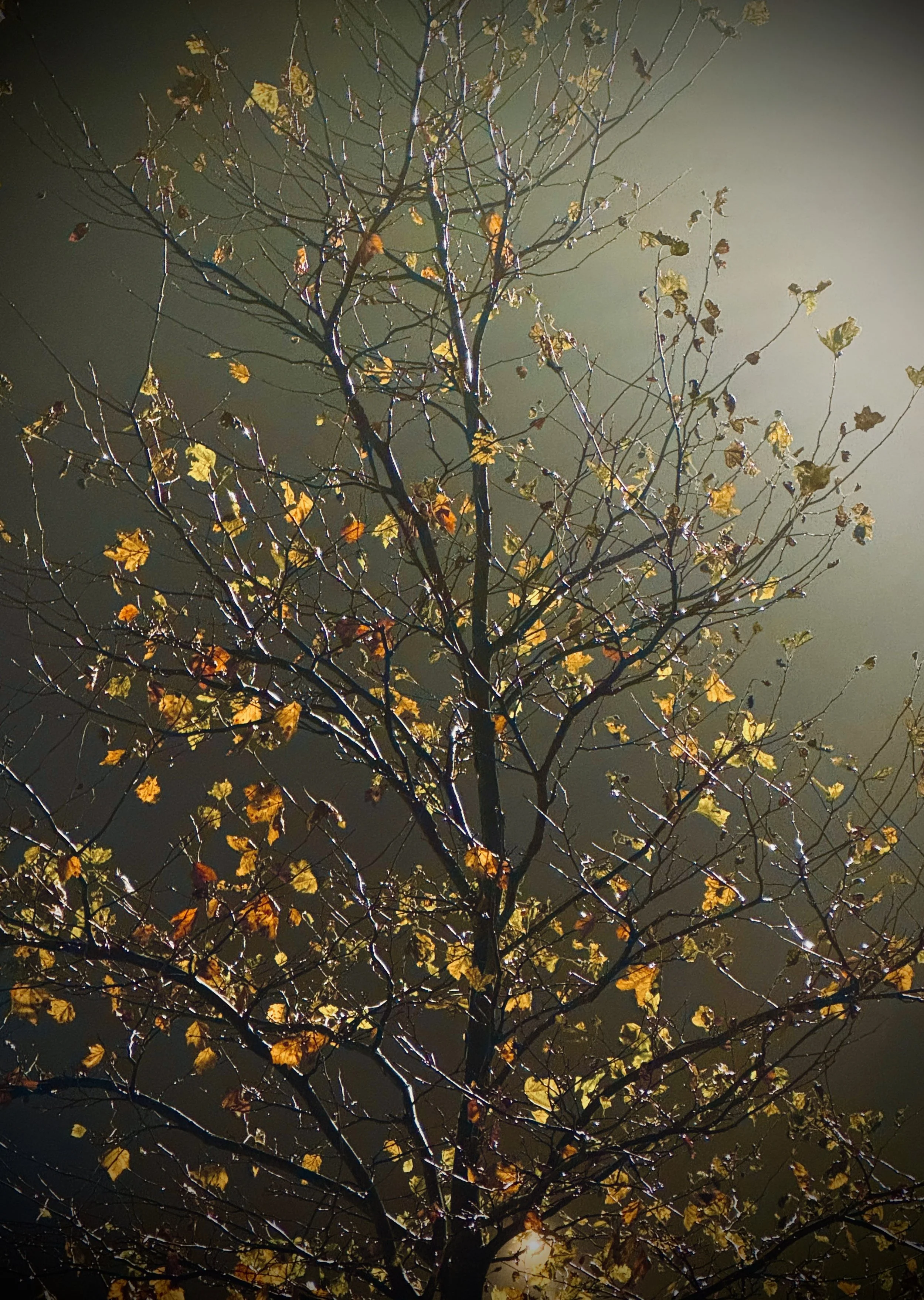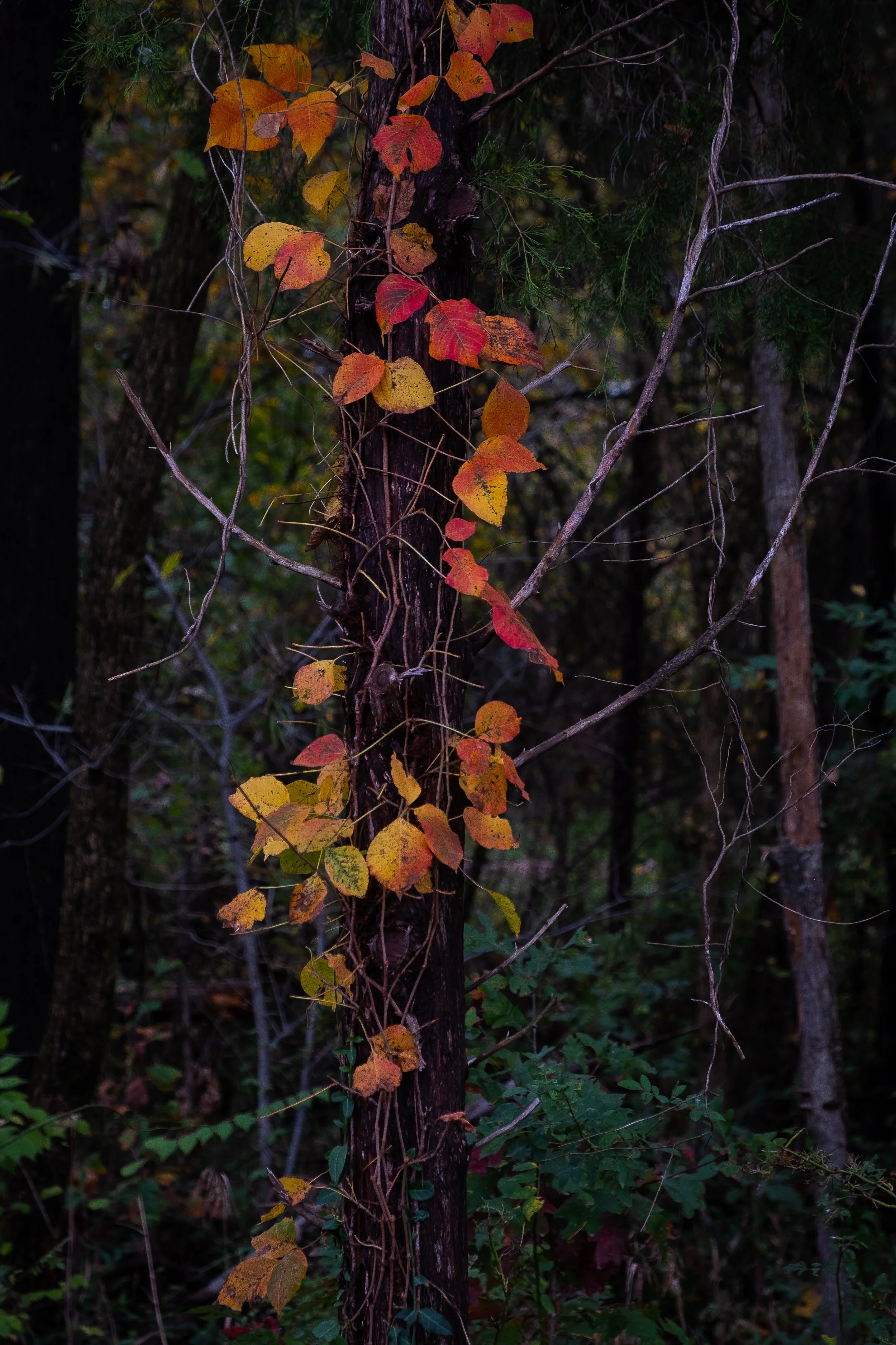 Misty wet fog and a nearby street light helped create this evening shot. With just enough fall leaves hanging on to provide a pop of color. Fairfax, VA