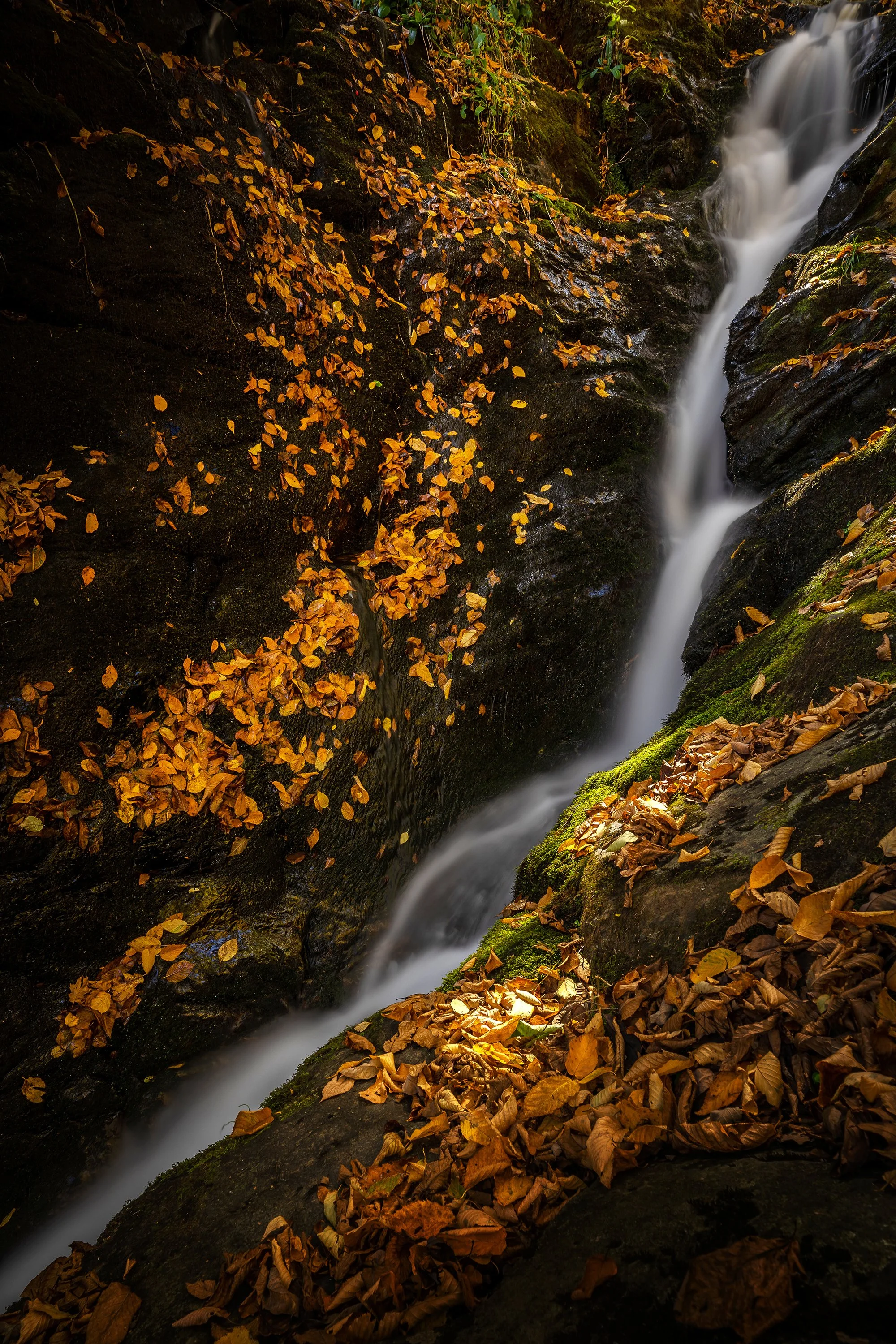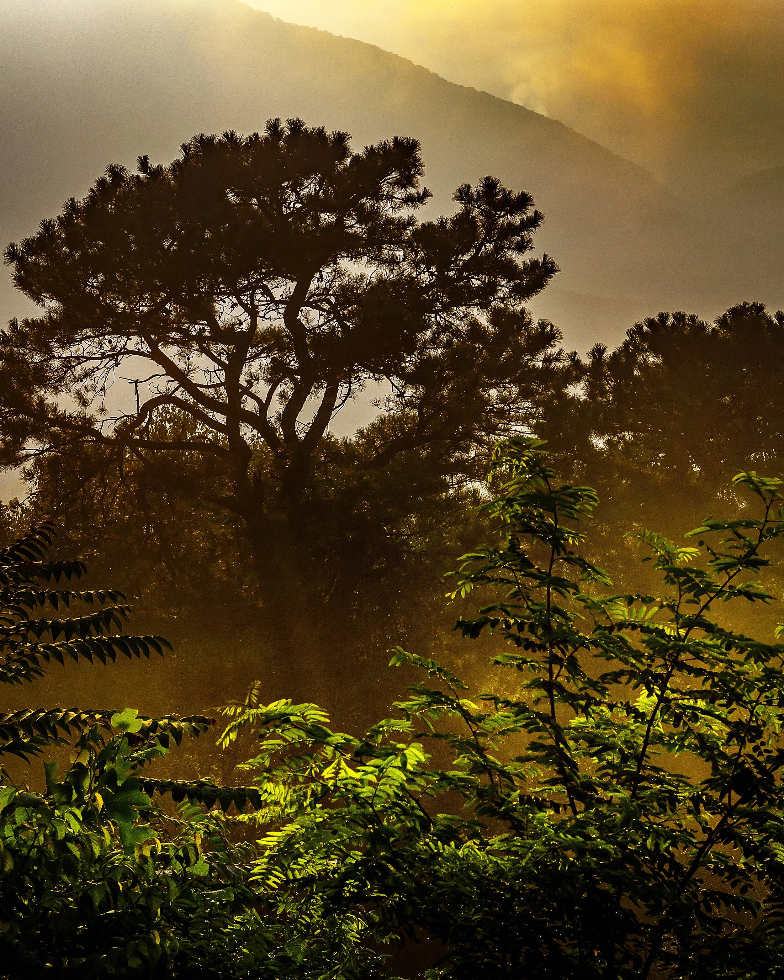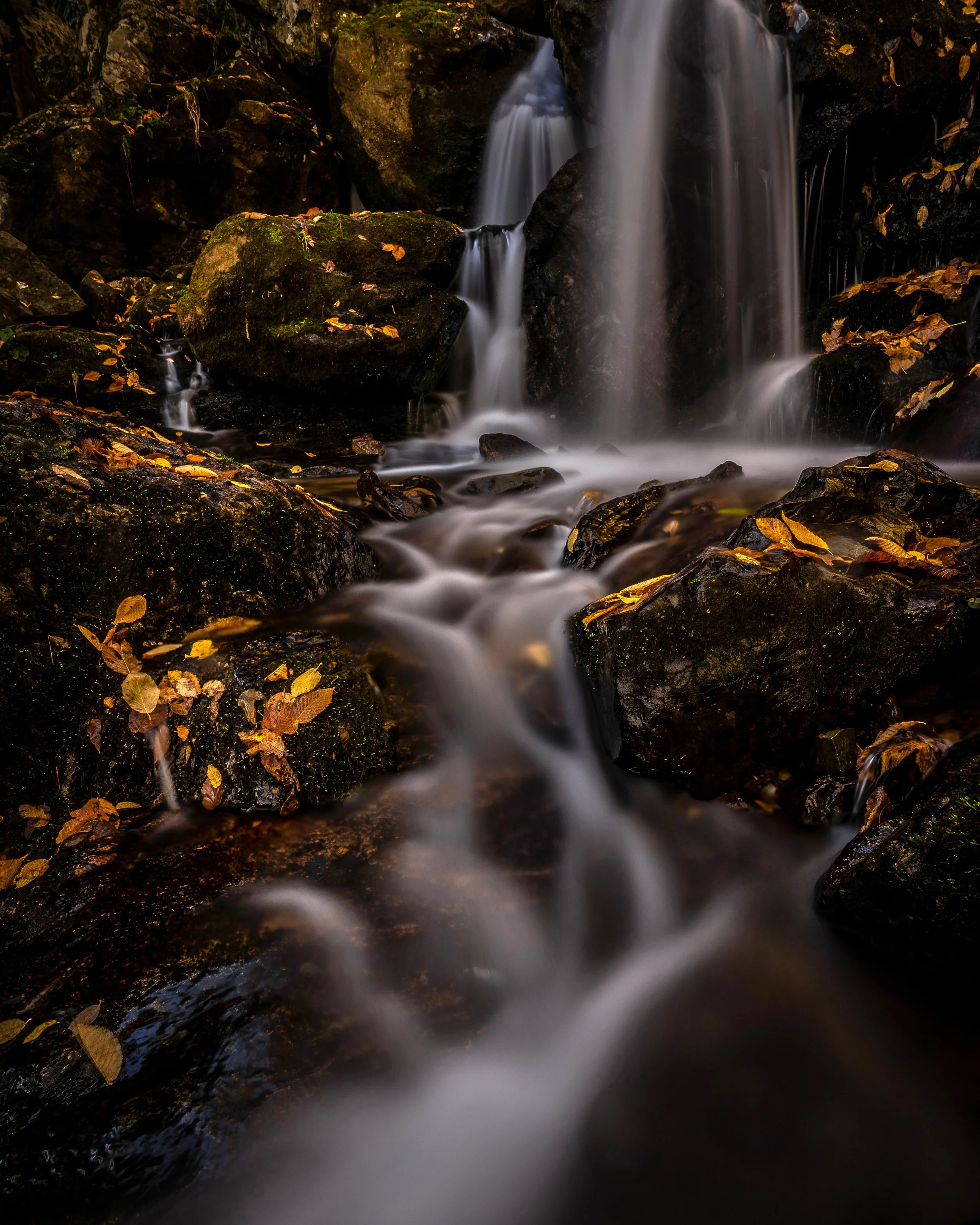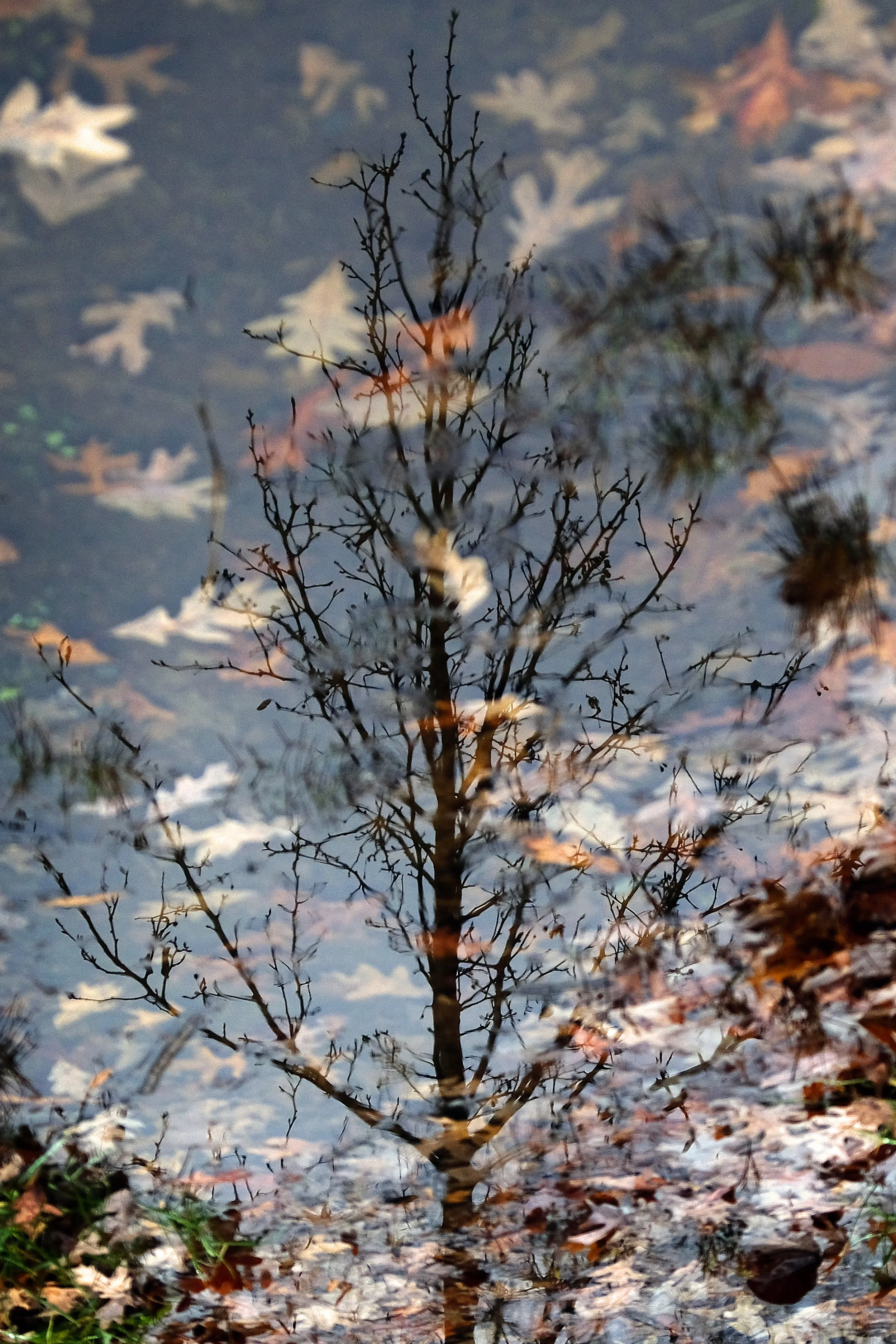 Misty wet fog and a nearby street light helped create this evening shot. With just enough fall leaves hanging on to provide a pop of color. Fairfax, VA